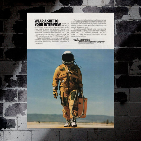 Lockheed Martin "Wear a Suit to Your Interview" Retro Style Military Aircraft Ad Poster Replica - Multiple Sizes Available!