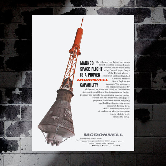McDonnell "Mercury Spacecraft" Retro Style Ad Poster Replica - Multiple Sizes Available!