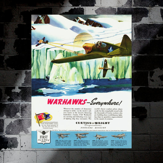 P-40 “Warhawk” Retro Style Military Aircraft Ad Poster Replica - Multiple Sizes Available!