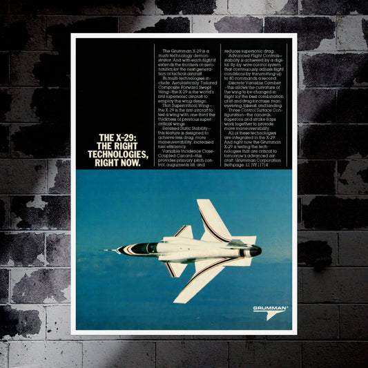 "X-29 - The Right Technologies” Retro Style Military Aircraft Ad Poster Replica - Multiple Sizes Available!