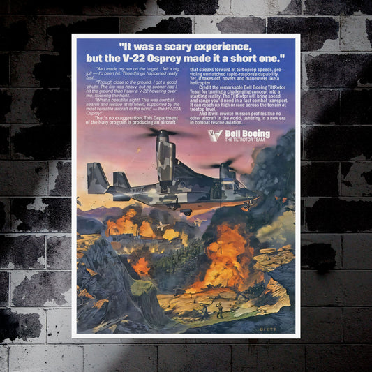 "V-22 Osprey - Scary Experience Made Short” Retro Style Military Aircraft Ad Poster Replica - Multiple Sizes Available!