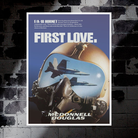 "F/A-18 Hornet - First Love” Retro Style Military Aircraft Ad Poster Replica - Multiple Sizes Available!
