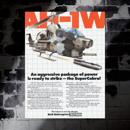 AH1W "SuperCobra" Retro Style Military Aircraft Ad Poster Replica - Multiple Sizes Available!