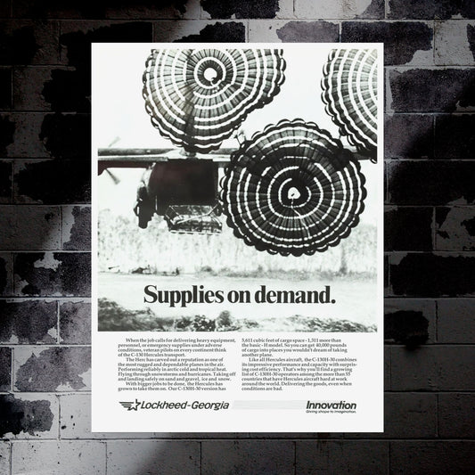 "C-130 Hercules - Supplies On Demand” Retro Style Military Aircraft Ad Poster Replica - Multiple Sizes Available!