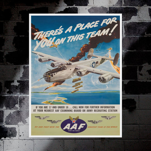 "There's A Place For You On This Team” Retro Style Army Air Forces Recruitment Ad Poster Replica - Multiple Sizes Available!