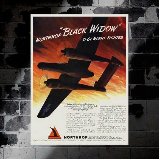 P-61 "Black Widow" Night Fighter - Retro Style Military Poster Replica