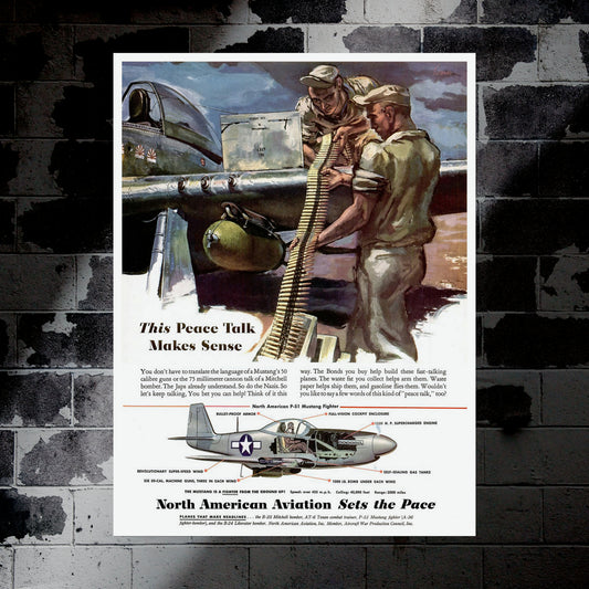 P-51 Mustang "This Peace Talk Makes Sense" - Retro Style Military Poster Replica