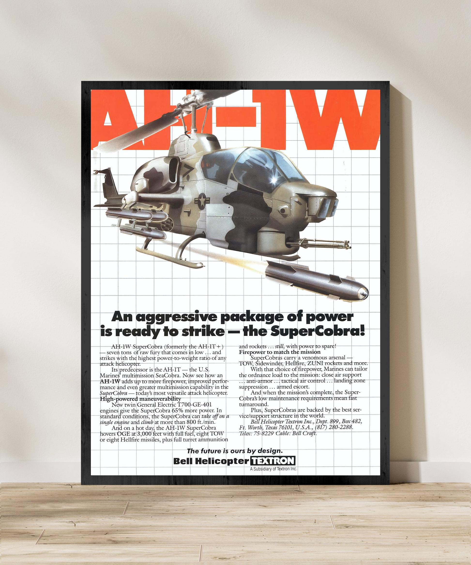 AH1W "SuperCobra" Retro Style Military Aircraft Ad Poster Replica - Multiple Sizes Available!